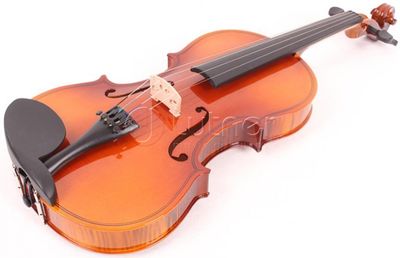 Скрипка 3/4 в футляре со смычком. Верхняя дека: ель. Задняя дека и обечайка: волнистый клен.