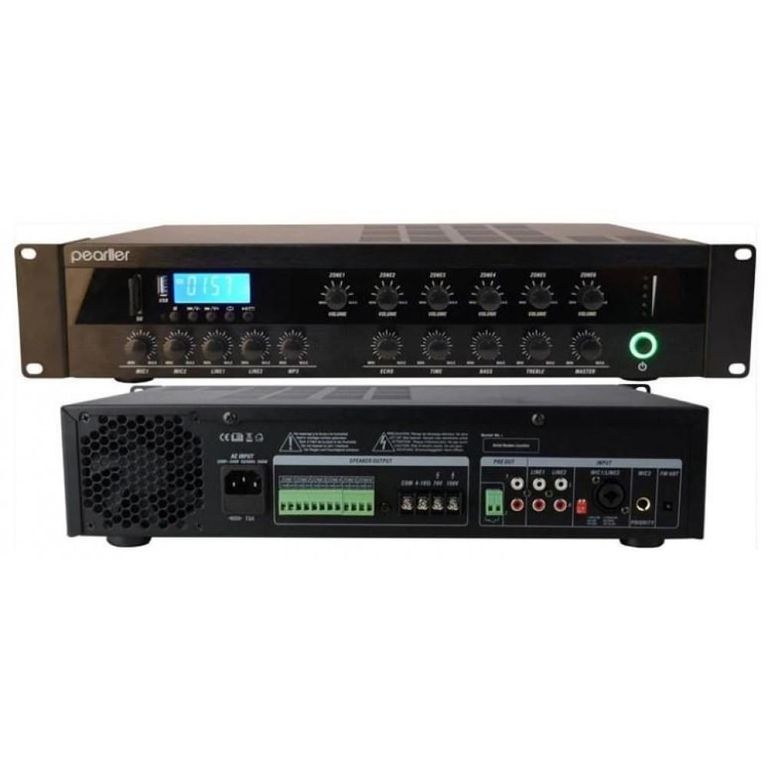 Добавить в избранное Убрать из избранного В наличии: 2 В наличии: 2 Pearller PAD-180W 26 296 ₽ В корзину Купить в 1 клик В корзину Купить в 1 клик Описание Комментарии 0 Описание Особенности: Установка в стандартный рэк. Подключение Bluetooth, USB/SD проигрыватель. 6 отдельных зональных регуляторов громкости. Индикация уровня сигнала. Двухполосный эквалайзер. Регуляторы громкости MIC1 и 2, Line1 и 2, mp3. Комбинированный вход XLR/6.3мм. Характеристики: Выходная мощность (RMS): 180 Вт. Частотная характеристика микрофон: 200 Гц - 18 кГц. Частотная характеристика линия: 100 Гц - 19 кГц. Коэффициент нелинейных искажений при 1 кГц: менее 1%. Микрофонный вход: -40 дБ 10 мВ. Линейный вход: -8 дБ 400 мВ. Отношение сигнал/шум: микрофон >80 дБ; линия >85 дБ. Входы: MIC1 6.3мм, MIC2/Line3: 6.35mm/XLR. Line 1&2: RCA. Питание: 110/120В AC. Размеры: 484 х 89 х 340 мм. Комментарии 0 Добавить комментарий Поделиться